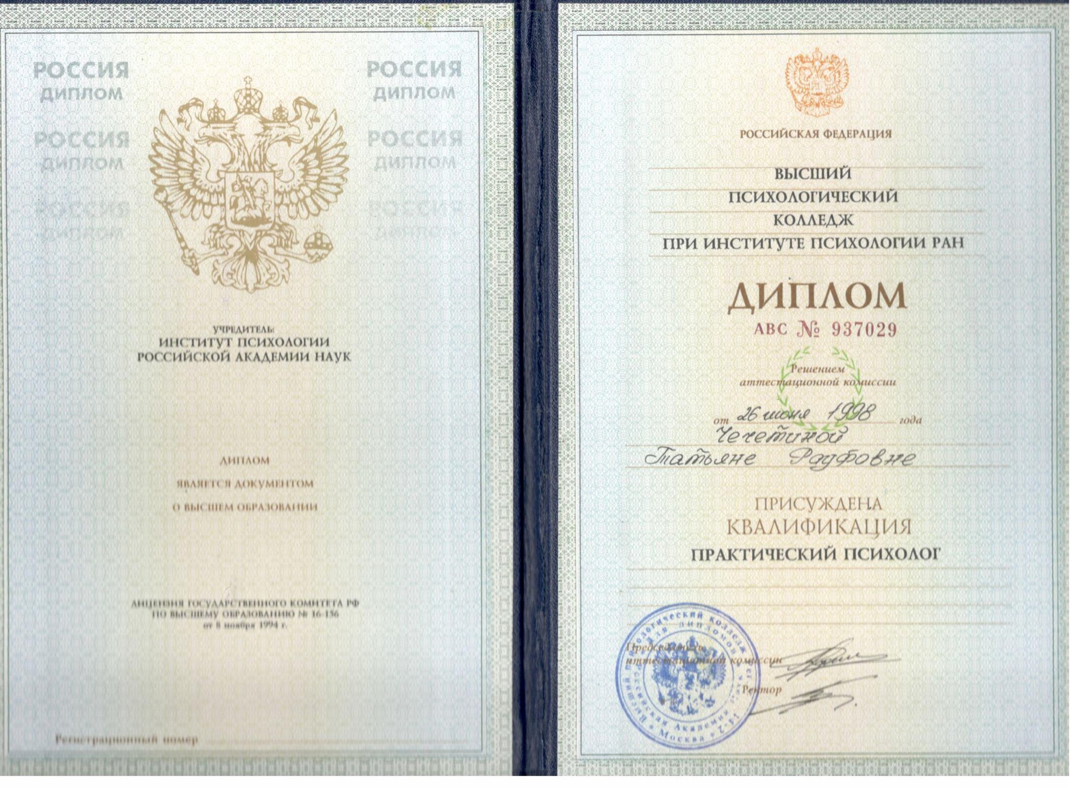 Диплом психолога